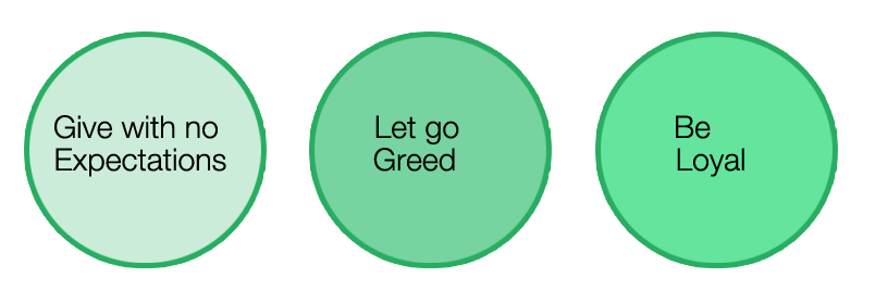Be loyal, loving and kind to everyone you surround yourself with and do so without expecting anything in return. Giving back can involve so much more than monetary contributions – consider sharing your time, experiences, insight, professional network or anything else that could benefit others